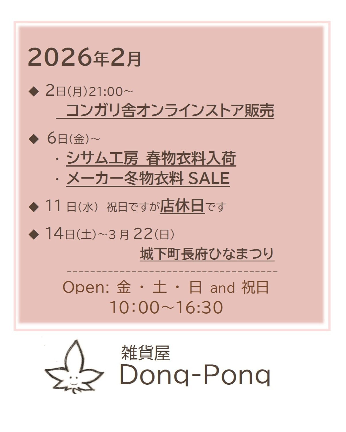下関の小さな雑貨屋Donq-Ponq [ドンクポンク]と読みます。 手作りのものや 心地の良いものを、小さな空間にぎゅっと詰め込みました。